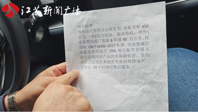 在射阳县交通局,射阳县运输事业发展中心客货运输管理科负责人杨冰清表示,出租车只需符合“轿车”这一个要求,但只有满足续航里程450公里、“三电”原厂质保8年或90万公里、供应商必须24小时售后等要求的新能源出租车才能申请2023年的三万元补贴,但是并未提供相应标准的正式文件。
