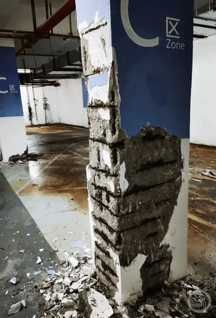“本来想在海南买个房安享晚年,结果现在每天过得战战兢兢。”王女士是最早发现地库立柱开裂情况的木棉园业主之一,她告诉上游新闻记者,2023年12月,她与几名业主闲逛到地下车库发现,一些立柱出现了严重破损、开裂迹象,“现场可以说是触目惊心,421号楼因为停工只修了地库,那里的很多承重柱有不同程度的裂缝、墙面脱落的迹象。由于脱落严重,不少柱体内部的钢筋裸露在外并伴随有生锈迹象。”