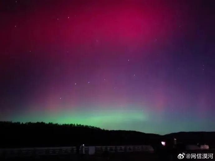 ▲受上次地磁暴影响,2023年12月1日晚,我国黑龙江、内蒙古、新疆等地均出现极光活动。图/网信漠河微博