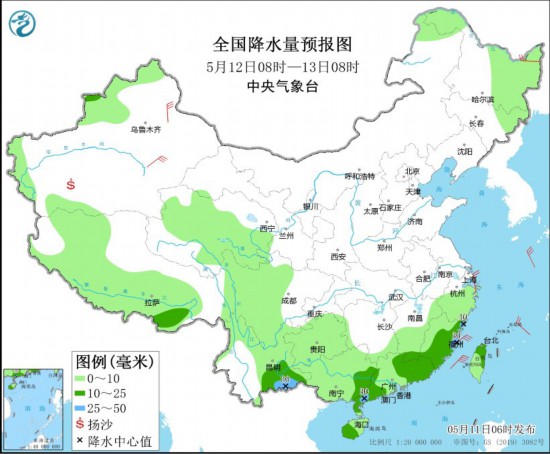 全国降水量预报图(5月12日08时-13日08时)