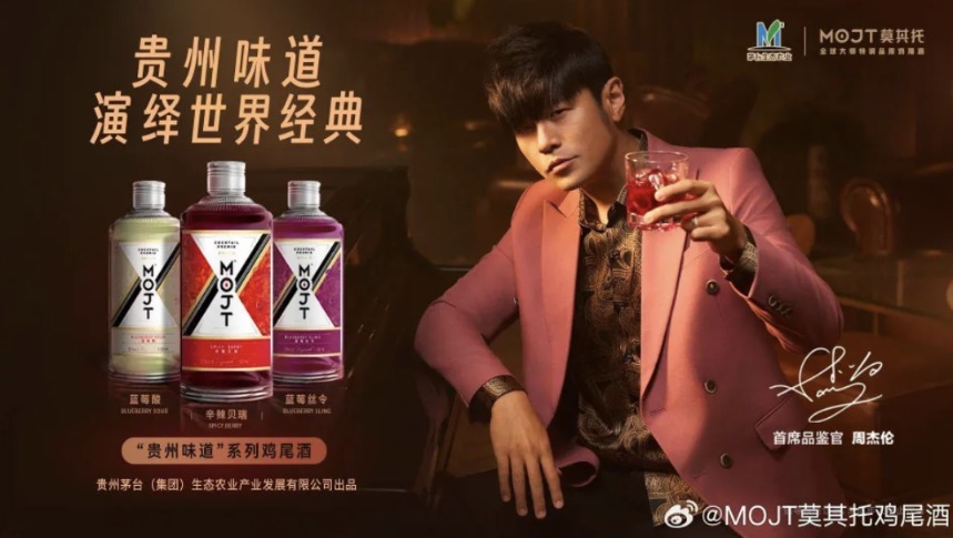 目前,在京东电商平台搜索“鸡尾酒”关键词,前五条搜索结果中包含两款锐澳产品,之后是百威低度酒、周杰伦代言的莫其托(MOJT)以及三得利果酒(Suntory)。其中,莫其托是贵州茅台于去年11月刚推出的新品牌,周杰伦代言为其带来不可忽视的影响力,曾一度在社交平台刷屏。而这款产品的影响力不仅限于网络,记者走访线下商超发现,莫其托和三得利鸡尾酒在上海盒马、联华超市等渠道可以找到,是除RIO外线下铺货能力最强的两款产品。