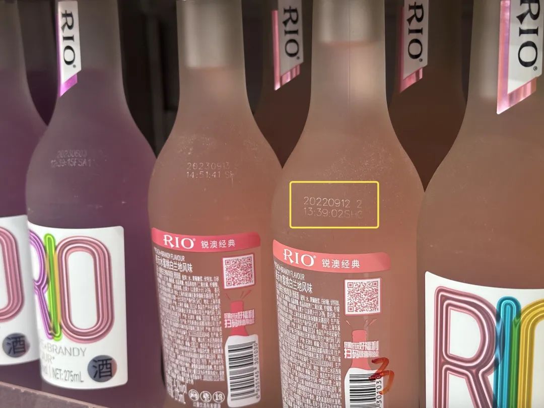 5月6日,《国际金融报》记者在上海一家联华超市货架上注意到,几瓶玻璃瓶包装RIO瓶身和瓶盖已积上一层薄灰,其中一瓶放到过期仍无人问津。该产品生产日期为2022年9月12日,保质期18个月,由此计算,产品应于2024年3月12日过期,已过期将近两个月。