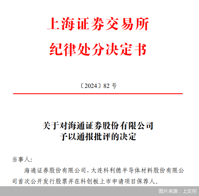 因此,上交所决定对海通证券予以通报批评。此外,上交所指出,张波、周磊作为海通证券指定的科利德首发上市项目的保荐代表人,存在未充分核查发行人科创属性指标相关信息;未充分核查成本核算的准确性的问题,同样被上交所予以通报批评。