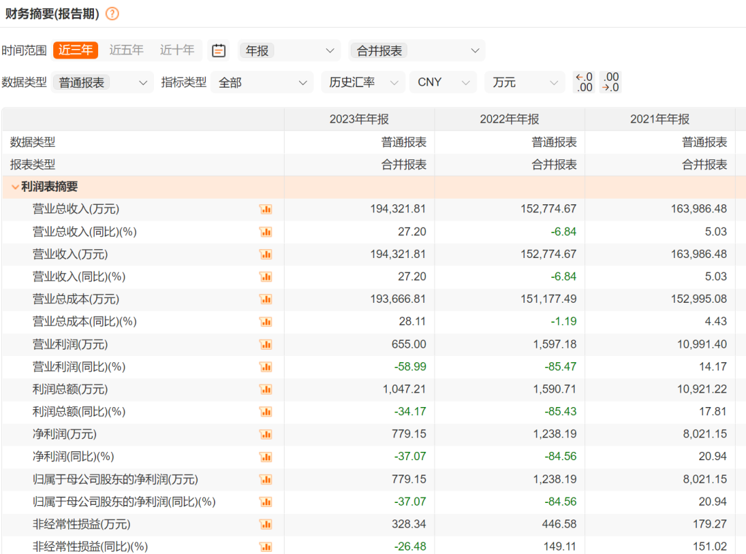 拉长时间来看,弘业期货净利的下滑始于2022年。2021年至2023年,该机构归母净利润分别为8021.15万元、1238.19万元、779.15万元。2022年同比下滑84.56%,2023年同比下滑37.07%。