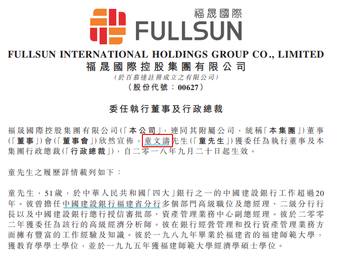不过,童文涛在福晟国际工作的时间并不长。2020年6月,福晟国际再度公告称,童文涛“因希望投放更多时间处理其他业务”,辞任执行董事、集团行政总裁。