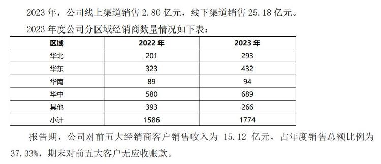 酒鬼酒2023年报经销商数量与分布情况数据。