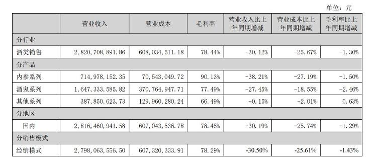 显然,这样的“双报双爆”答卷是投资者无法接受的。对白酒行业而言,一季度是旺季,酒鬼酒的营收竟还没有去年生意惨淡的二、三季度多?这背后问题出在哪?记者在其2023年财报中或许找到了答案。