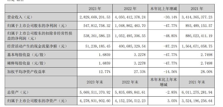 酒鬼酒2023年报营业收入与净利润部分。