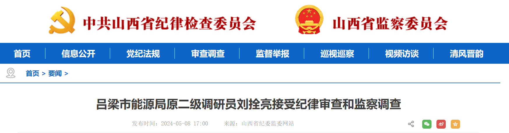 吕梁市能源局原二级调研员刘拴亮涉嫌严重违纪违法,目前正接受吕梁市纪委监委纪律审查和监察调查。