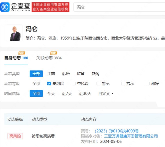 值得注意的是,冯仑并非第一次因三亚万通健康开发管理有限公司站上舆论风口。