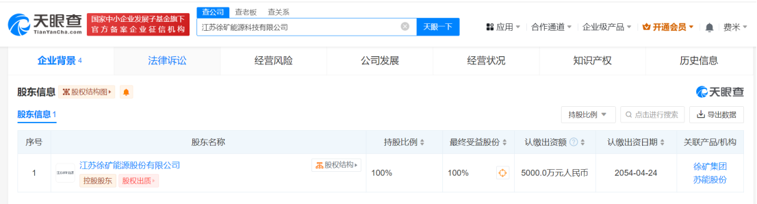 天眼查App显示,近日,江苏徐矿能源科技有限公司成立,法定代表人为刘金虎,注册资本5000万人民币,经营范围含地质灾害治理工程施工、地质灾害治理工程设计、地质灾害危险性评估、测绘服务、矿产资源勘查、新兴能源技术研发等。股东信息显示,该公司由苏能股份(600925)全资持股。