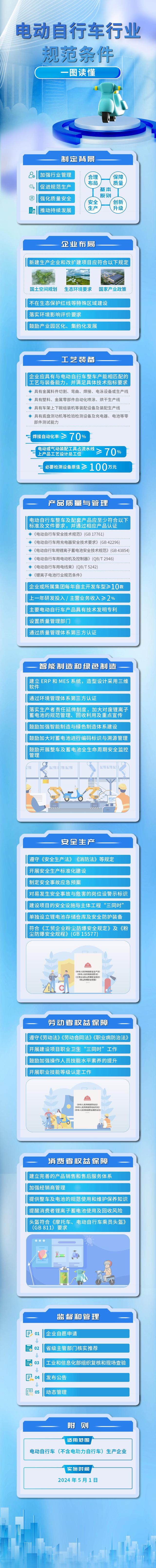 为加强电动自行车行业管理,促进电动自行车企业规范化生产,强化电动自行车产品质量安全,推动行业健康可持续发展,工业和信息化部、国家市场监督管理总局、国家消防救援局制定了《电动自行车行业规范条件》和《电动自行车行业规范公告管理办法》。现予以公告。