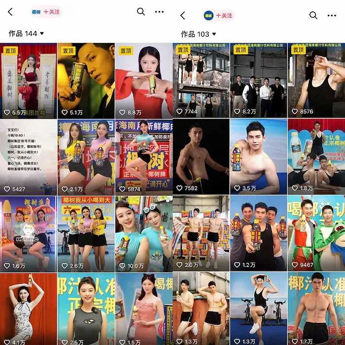 据界面新闻,海南记得开心文化传媒有限公司是椰树集团孵化的新媒体公司,主要负责椰树的宣传工作,其负责人尹丹丹曾回忆,在2021年以前,椰树也拍了许多短片、宣传片分发到公众号等渠道商,但因内容风格非常官方,传播效果并不好。直到尹丹丹偶然发现了椰树式模特的流量密码。