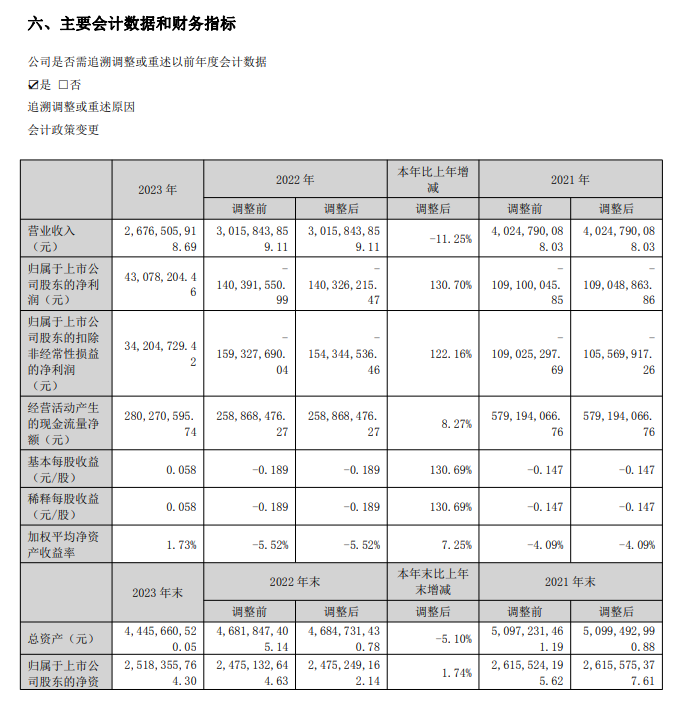 截至2022年底、2023年底,公司货币资金分别为2.31亿元、1.49亿元;对应短期借款分别为9.48亿元、8.64亿元,资金缺口明显,偿债承压。