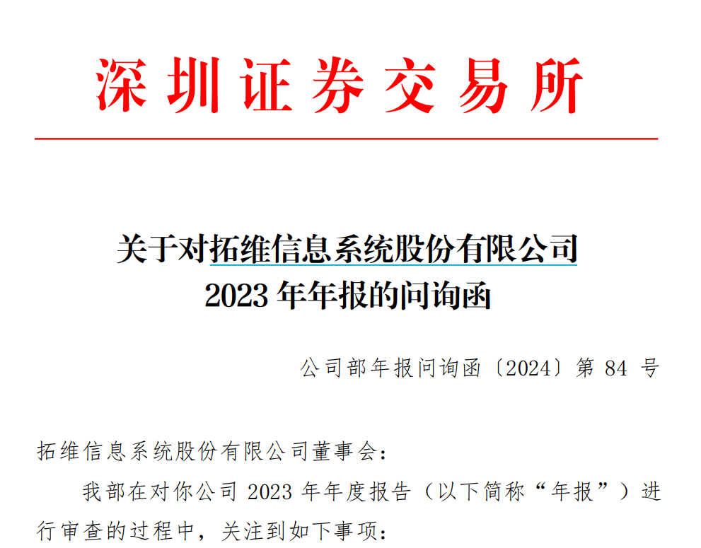 深交所关注了拓维信息多个财务数据相关问题,其中包括要求公司分析说明2023年度下半年营业收入大幅增长、但净利润亏损的原因,以及公司主营业务是否存在季节性波动等。