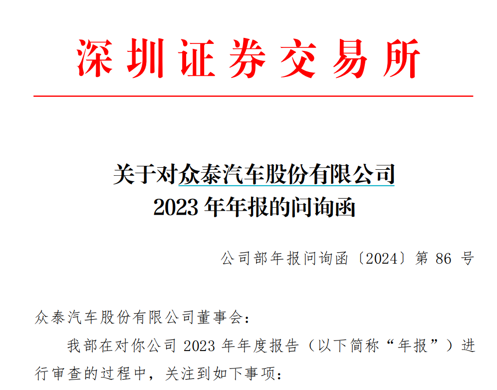 同时交易所还关注,众泰汽车在董事会、监事会审议年度报告前是否向全部董事、监事发送定期报告及相关资料,是否预留充足时间供相关人员审阅,并需要逐一说明全体董事、监事和高级管理人员针对年报编制工作的履职情况。
