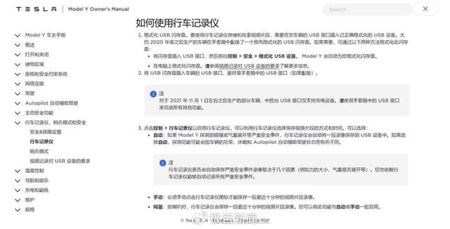 特斯拉Model Y的行车记录仪使用方法(图源:特斯拉官网)