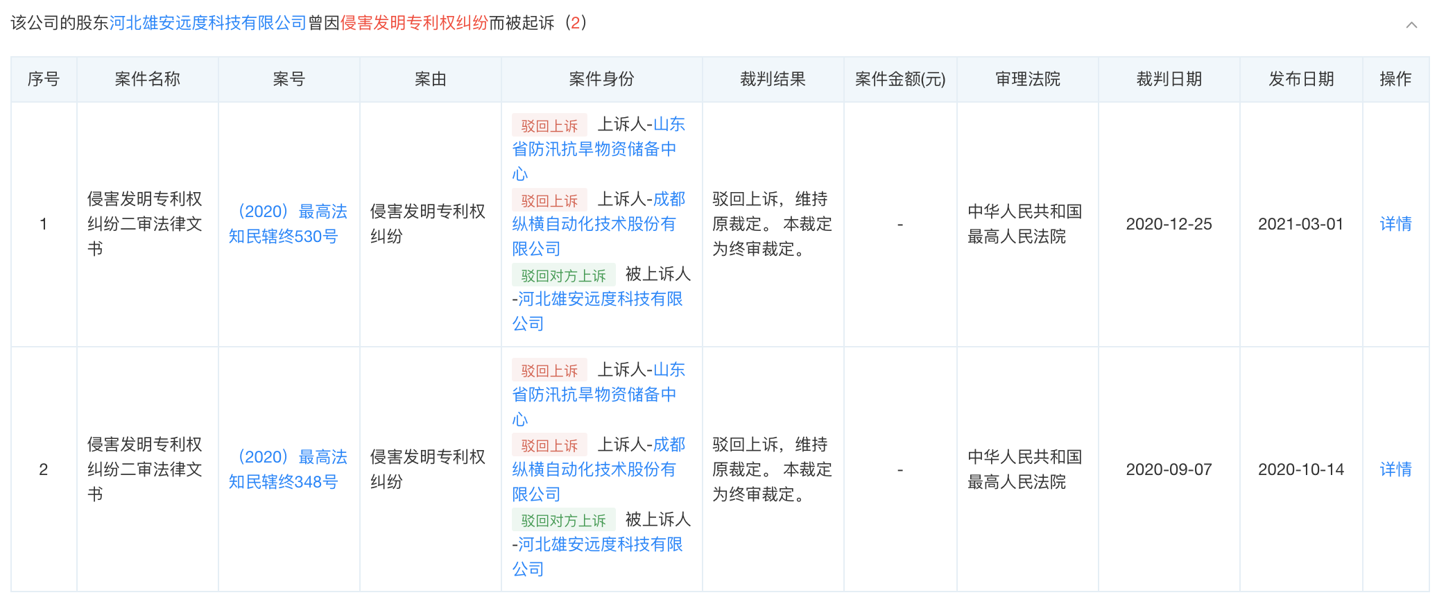 《科创板日报》记者通过查询工商信息显示,远度科技与纵横股份及其子公司存在多起法律纠纷,诉讼原因多涉及发明专利权、发明专利临时保护期使用费、侵害实用新型专利权等,诉讼涉及时间最早可追溯至2020年6月,最近则至2021年6月30日。