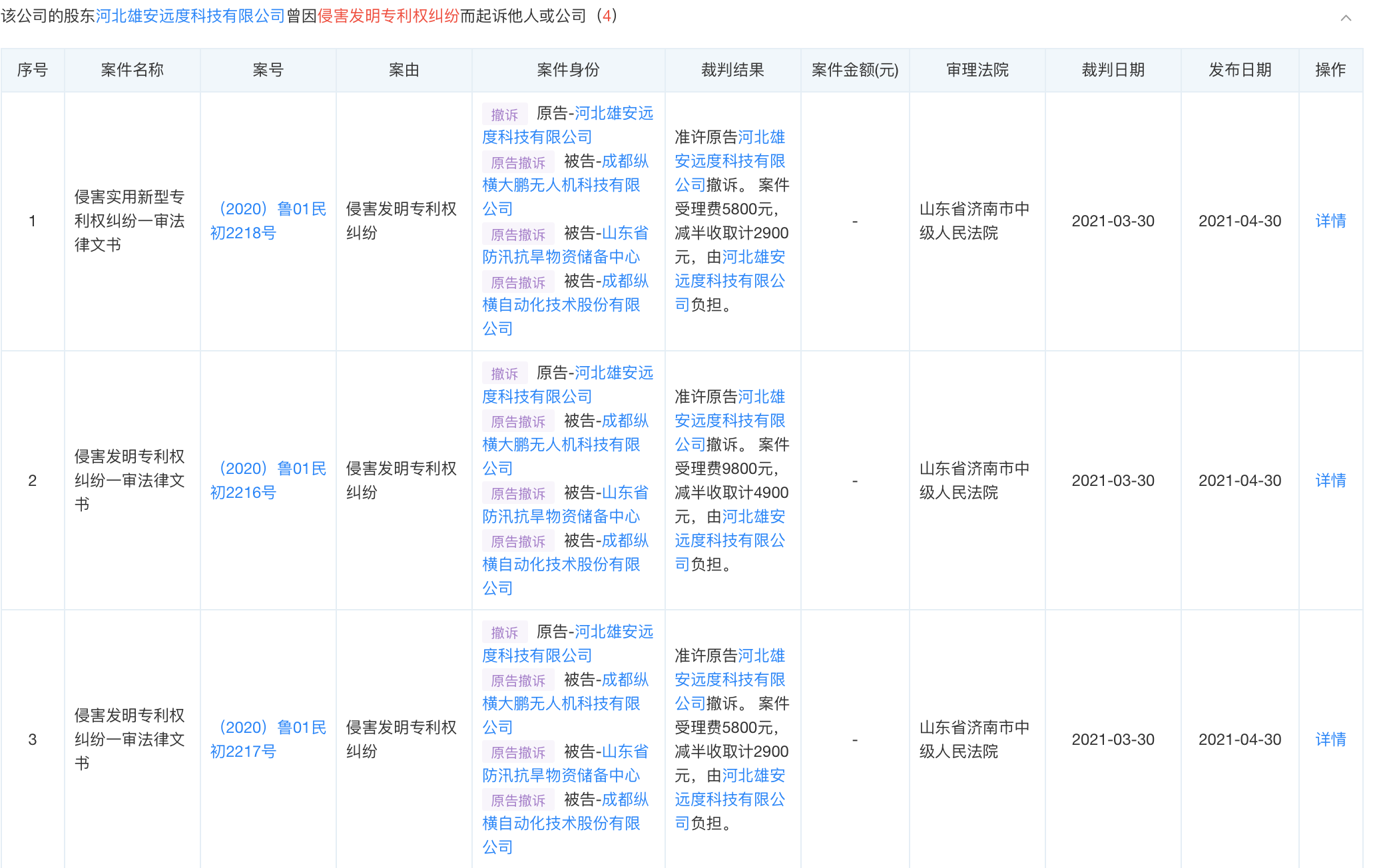 根据相关裁判文书来看,提起上诉的案件多由原告(即:河北雄安远度科技有限公司)撤诉。