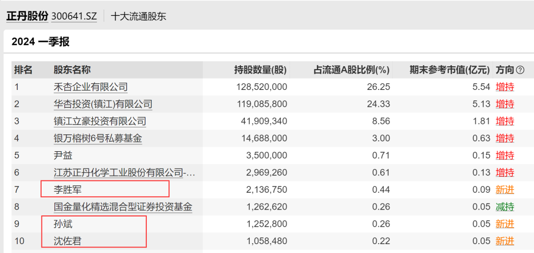 值得注意的是,4月27日正丹股份披露的一季报显示,今年一季度,李胜军、孙斌、沈佐君等三位自然人新进入前十大股东,持股数量分别为213.68万股、125.28万股、105.85万股。
