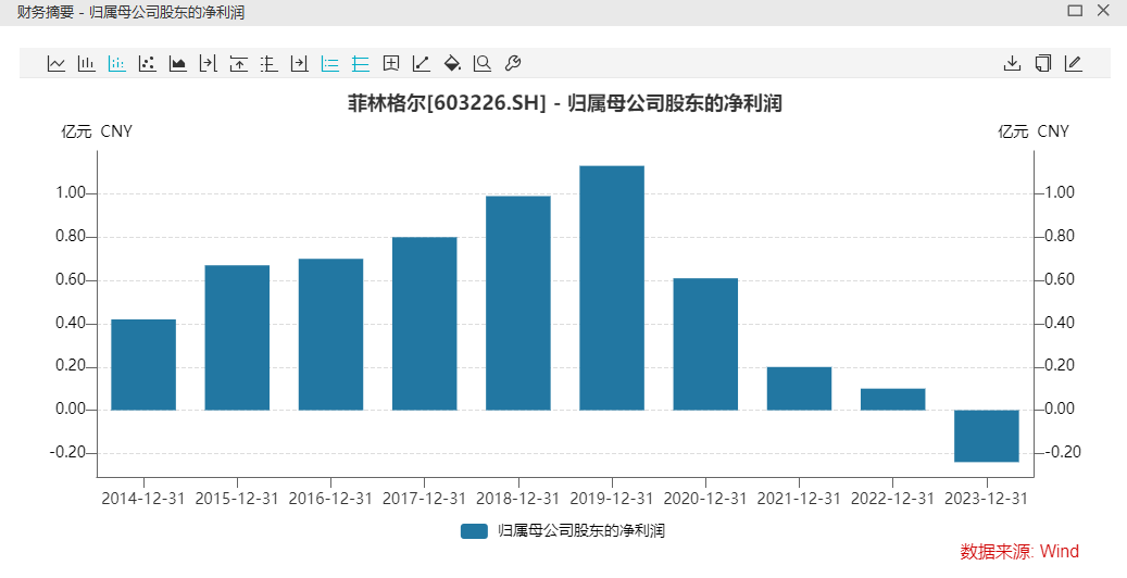 财务数据显示,公司2023年实现营业总收入3.95亿元,同比下降25.01%;归母净利润为-2418.43万元,同比下降348.76%;扣非归母净利润为-3480.9万元,同比下降2225.78%。2024年一季报显示,公司亏损仍在持续,当期营业收入为5129.95万元,同比下降33.4%;归母净利润为-1199.63万元。