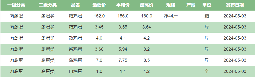 今年2月份以来,鸡蛋价格出现持续下跌,部分地区的价格已经跌到了每斤3元左右,和去年同期相比,下跌已超两成。5月3日,每经小编查阅北京新发地网站发现,箱鸡蛋价格为低至3.45元/斤。
