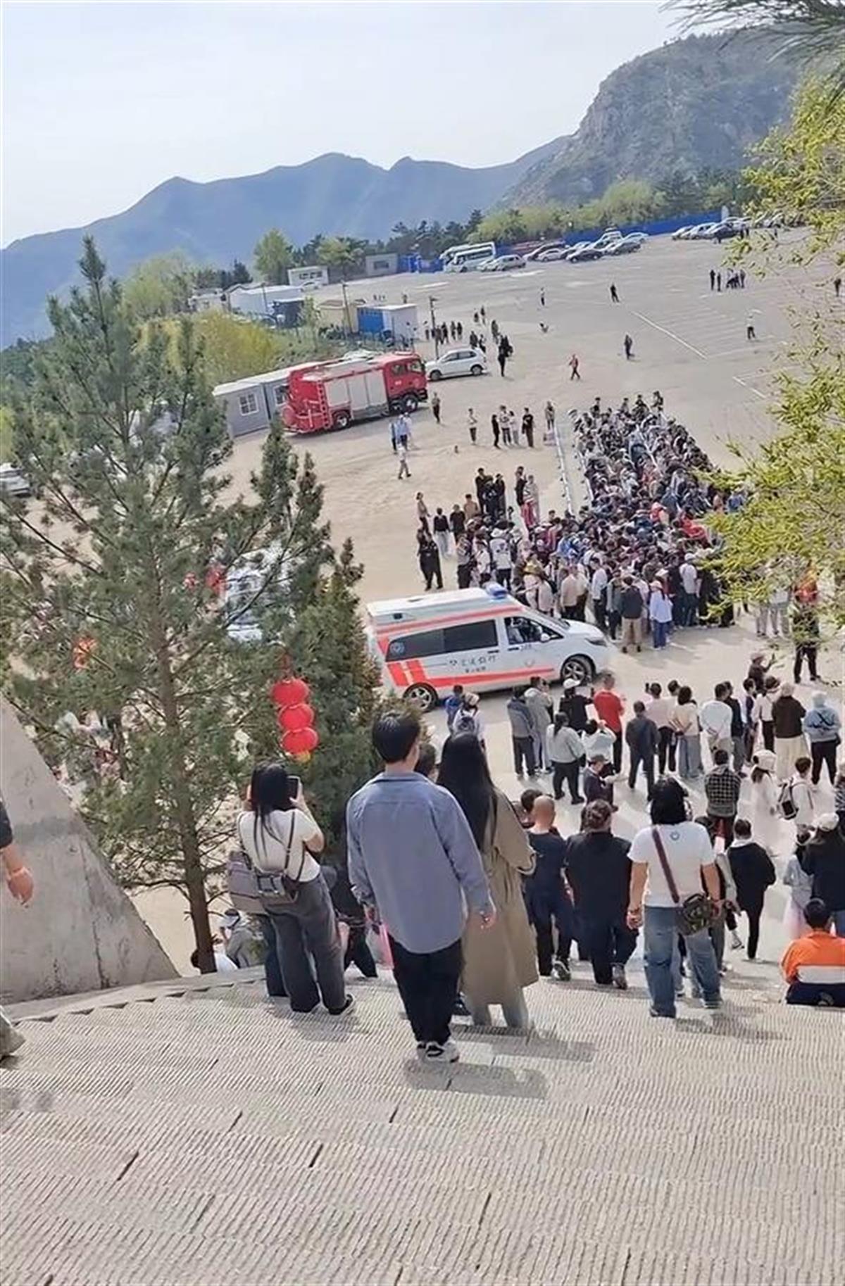 一名游客向红星新闻表示,他在2日16时左右下山时,听说受伤的游客当时还没上到山顶,被滚落的石头砸伤,伤者有多人,现在景区内已不让游客上山,山上的游客也被通知下山。该游客还称,他下山的时候看到有两辆救护车上山,有几名伤者被抬了下来。