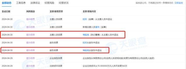 据天眼查APP,天安二手车的工商信息在4月29日、30日发现多项变动。其中,注册资本从15万元降为5万元,褚振亮从股东行列退出,也不再担任执行董事一职。