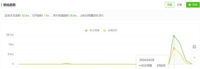 红星资本局通过飞瓜数据查询发现,从4月28日到5月1日,褚振亮的抖音账号共涨粉50.84万人。截至发稿,褚振亮已拥有84.3万粉丝,获赞214.3万次。