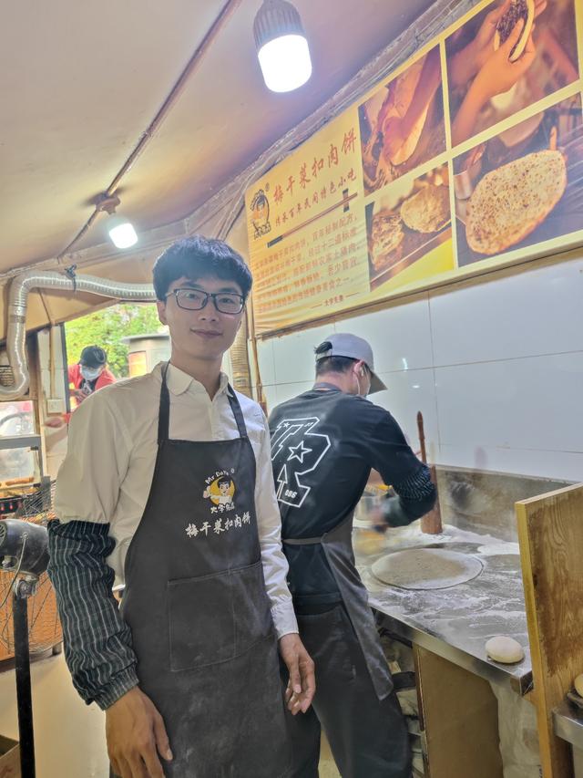 2020年9月底,我到杭州开了第一家属于自己的烧饼店,名为“大宇先森”梅干菜扣肉饼铺。这家店很特殊,本来要交几千块房租,结果房东吃了我的饼,觉得在这边很有市场,提出跟我合作,不收房租,直接从营业额里抽成。