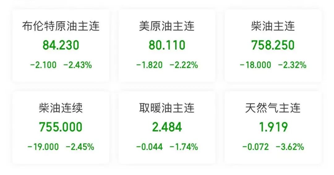 截至今晨收盘,WTI原油期货收跌超3.5%,报79.00美元/桶;布伦特原油期货收跌近3.4%,报83.44美元/桶,刷新3月12日以来收盘低位。