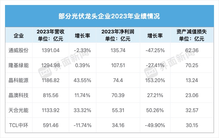 隆基绿能拥有全球最大的P型产能,在N型等新技术快速渗透的当下,受资产减值影响也更大。