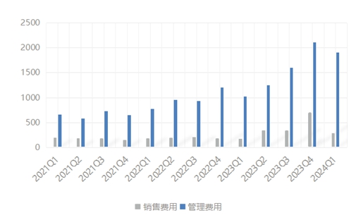而天益医疗管理费用上市前后差异更加明显,同花顺iFinD数据显示,自2021年第一季度至2022年第一季度,公司单季管理费用一直维持在580万元至780万元之间,2022年第二季度、第三季度增至900多万元,2022年第四季度起突破千万关口,并于2023年第四季度猛增至2110.78万元,至2024年一季度略回落至1909.52万元,仍远超上市前水平。