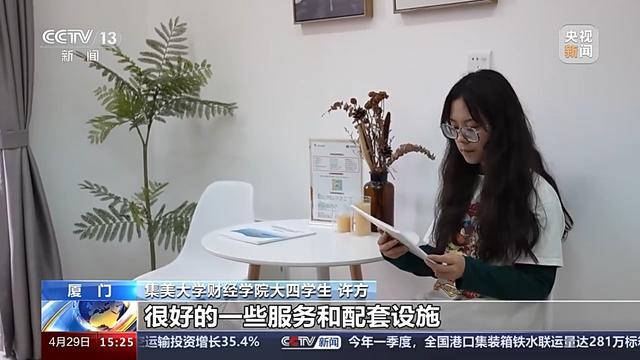 集美大学财经学院大四学生 许方:是非常居家、温馨的环境,感觉好像都比我们宿舍还要豪华一点点,很贴心地为我们考虑到一些非常好的服务和配套设施。