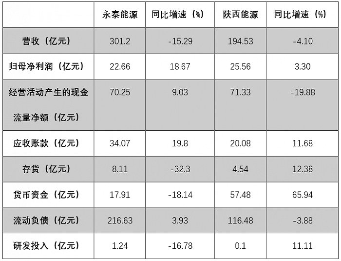 资产负债表方面,陕西能源账面上资金充裕,而永泰能源资金量同比大幅减少,且后者偿债压力较大。
