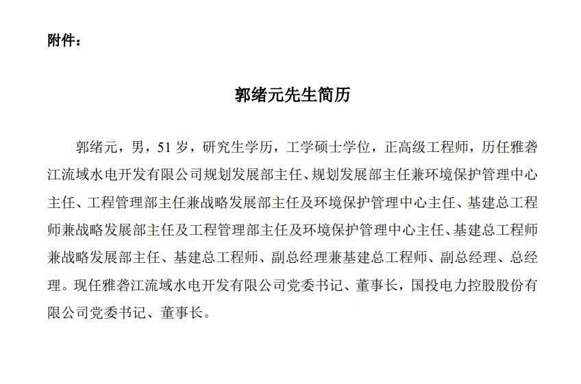 国投电力发布公告称,公司于4月25日以现场结合通讯方式召开公司第十二届董事会第二十六次会议,审议通过了《关于选举公司董事长的议案》,同意选举董事郭绪元先生为公司第十二届董事会董事长,任期与第十二届董事会任期一致。
