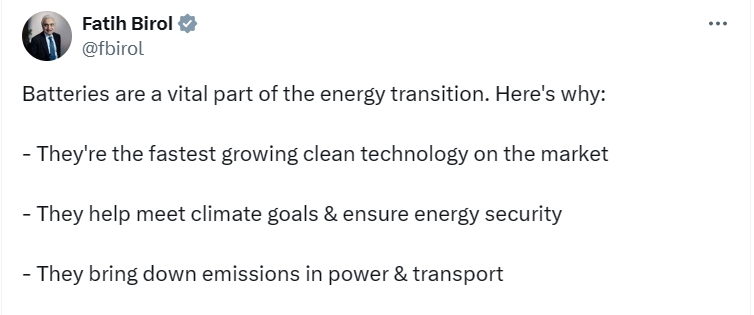 比罗尔分析称,电力和运输部门是迅速减少排放以实现COP28商定目标的两个关键支柱,而电池又是这两个领域发展的基础。