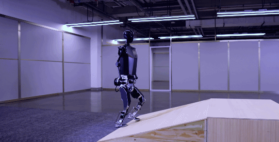 发布会上,“天工”还为现场观众带来了一场精彩的“演出”,展示出“天工”对复杂环境更强的适应性,在行走及奔跑时更快速、更拟人,已实现6公里/小时的稳定奔跑。同时,在盲视情况下,“天工”能够平稳通过斜坡和楼梯,对磕绊、踏空等情况也可以做到步态的敏捷调整。充分说明了运动控制方法对各种地形的强大适应性,在后续开发的基于感知的步态后,将带来更强的通过能力。