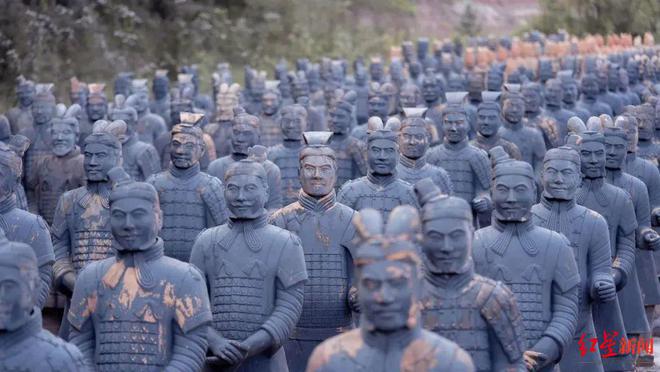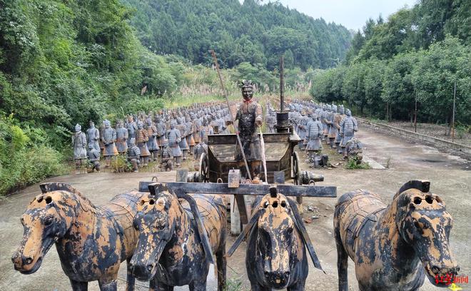 时间回到2019年11月,“古名天下”景区正式对外开放,高峰时曾一天吸引两三万人次游客到来。号称“华夏探索之旅,畅游神话王国”,景区内修建了一座“华夏历史进程园”,园内塑像从“盘古开天”到“宣统退位”,几乎囊括历代帝王。此外,还制作有数百个仿制兵马俑,被网友称为“低配版山寨兵马俑”,一度吸引众多游客打卡。