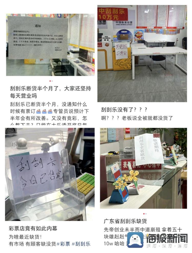 除了北京地区,记者在社交平台搜索关键词“刮刮乐缺货”,发现湖南、河南、广西、浙江等地也出现了不同程度的断货情况。