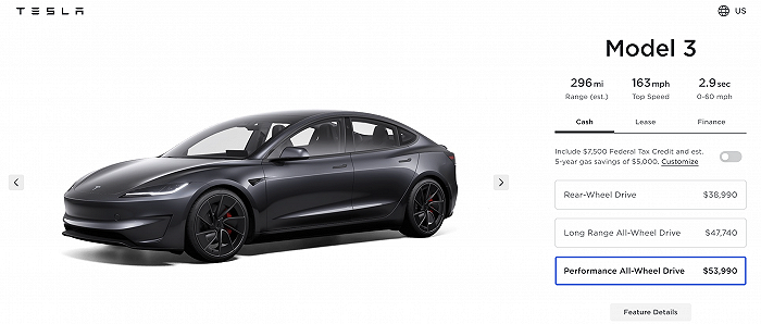 特斯拉美国官网显示,特斯拉Model 3高性能版本价格从52990美元上调至53990美元。