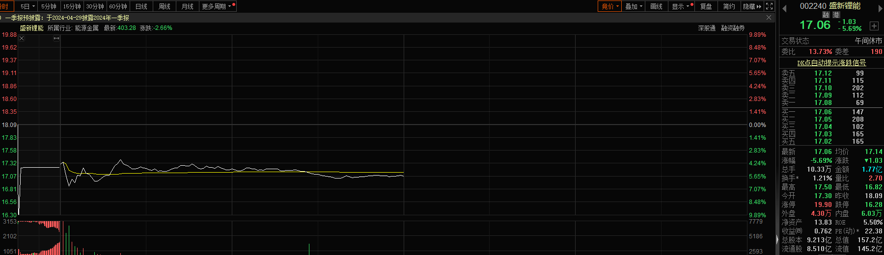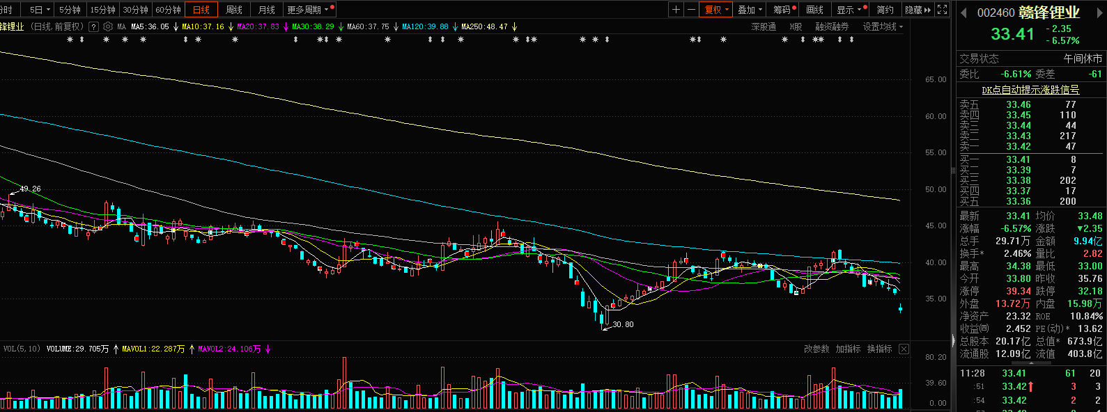 从二级市场上看,上述两只股票的走势也相当疲软,或受天齐锂业业绩暴雷的影响,这两只股票今日也大幅走低,截至午间收盘,赣锋锂业跌超6%,盛新锂能跌超5%。