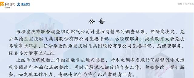 重庆燃气公告截图。