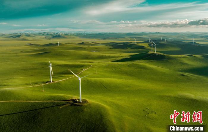 霍林郭勒市的风力发电群。(无人机图片) 霍林郭勒市融媒体中心供图