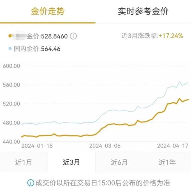 近半年多以来,一路暴涨的黄金价格可以说令所有人目瞪口呆。2023年全年,国内月均金价从418元/克涨到了476元/克。进入2024年,仅仅3个多月,金价就突破了500元大关,飙升至560元/克左右。而黄金品牌零售价就更夸张了,已经涨破700元/克。