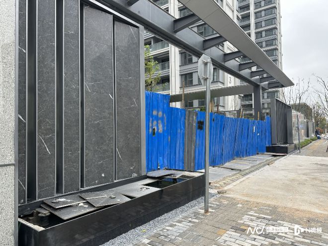 令业主不解的,还有杨浦滨江壹号的“双标”施工。在爱国路和顺平路街角,是原先的售楼处,目前已改造为示范区。南都记者到现场看到,该示范区的对外界面是铝板加真石漆加玻璃幕墙的构造,看上去是全小区的“门脸”,但这个能撑场子的建筑并不是小区的大门,后续会被社区使用。而走进小区看到的示范区的背面,也是面向小区内部的墙体,则是普通涂料。