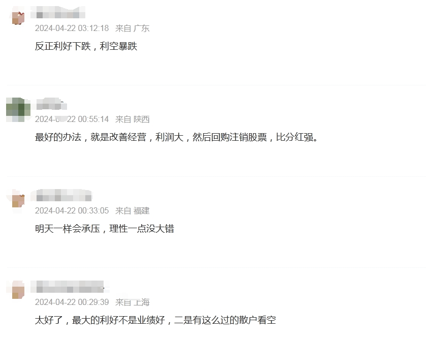 面对业绩大涨、股价暴跌的情景,股民开始“按图索骥”。有股民表示,“见光死”“业绩太好了没有预期炒了可以跌几年了”“在A股只有亏损股才有好的预期”“A股从来不看业绩,绩差股成长性最好,因为会涨”……