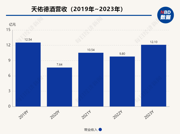 从营收和净利润数据来看,天佑德酒表现可圈可点。2019年到2023年,公司实现营业总收入分别为12.54亿元、7.64亿元、10.54亿元、9.80亿元和12.10亿元,2023年营业总收入创下了最近4年的新高,逼近疫情发生前的2019年营收规模。而从归母净利润来看,2019年到2023年分别为3612万元、亏损1.51亿元、6322万元、7568万元和8958万元,公司归母净利润创下近5年新高。