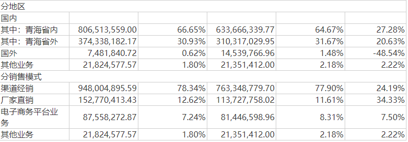 对于公司省外拓展问题,天佑德酒方面表示,省外部分就是巩固青海大本营市场的同时,将战略前移至人口基数和白酒消费容量较大的甘肃市场,同时全国化进程以晋、陕、豫为战略核心市场,聚焦重点区域、重点资源,全力打造样板市场。此外,积极布局华东的无锡,华南的福州、南宁,华北的张家口等重点外阜市场,为公司全国化进程做好前期布点工作。