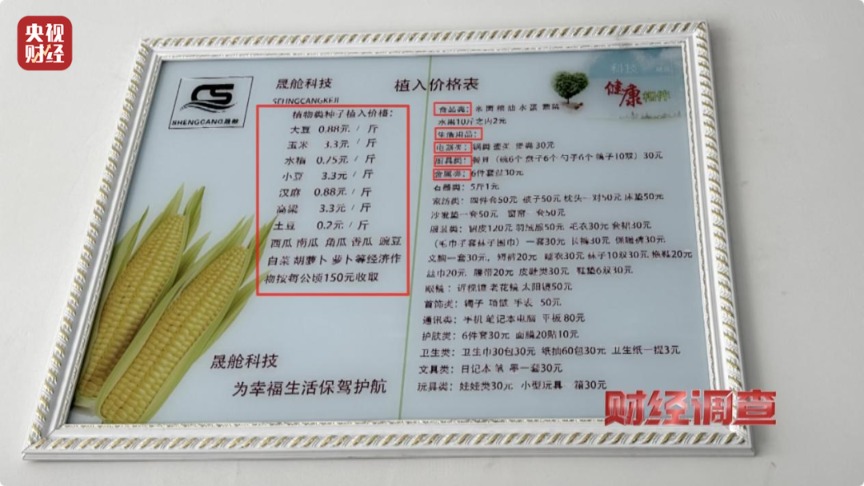 这家公司的神奇之处在于不仅能给种子赋能,生活中的各类物品都可以赋能,价格也是明码标价挂在墙上。